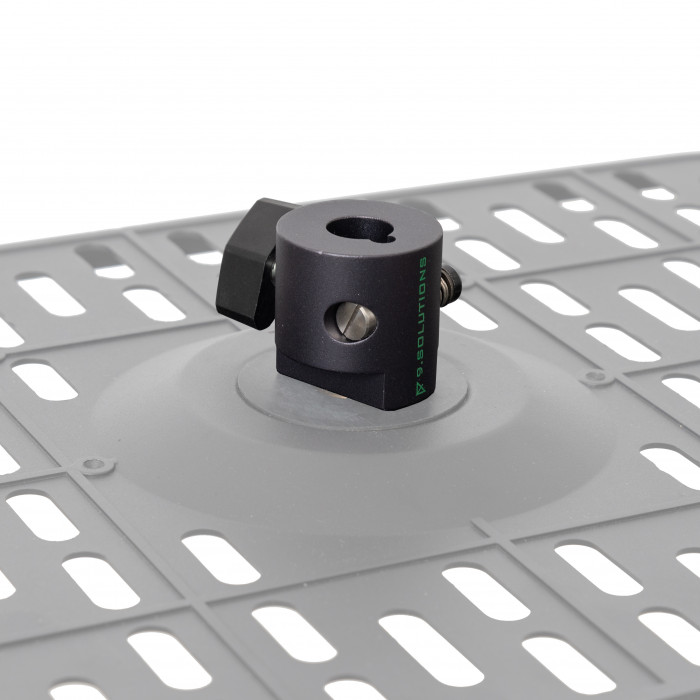 This adapter will allow you to mount one of the i-Vsior platforms to the top of a C-Stand, 5/8" stud, or any other clamp or stand that has a baby pin. The adapter has a 3/8" male thread on one end and the other end is a baby 5/8" socket.