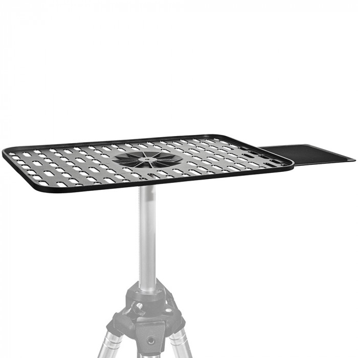 The i-Visor Pro MAG Platform is a magnesium alloy platform that is designed to be extremely lightweight yet rugged enough to support the heaviest 17" laptop. Its unique design accommodates a passive cooling feature. Unlike any other support platform it comes with a Mouse Tray that quickly fastens on and will support even heavy-handed mouse users. The i-Visor Pro MAG Platform is made to fasten on to i-Visor Tripod (IV1230) or any other rugged tripod with a 3/8" stud.